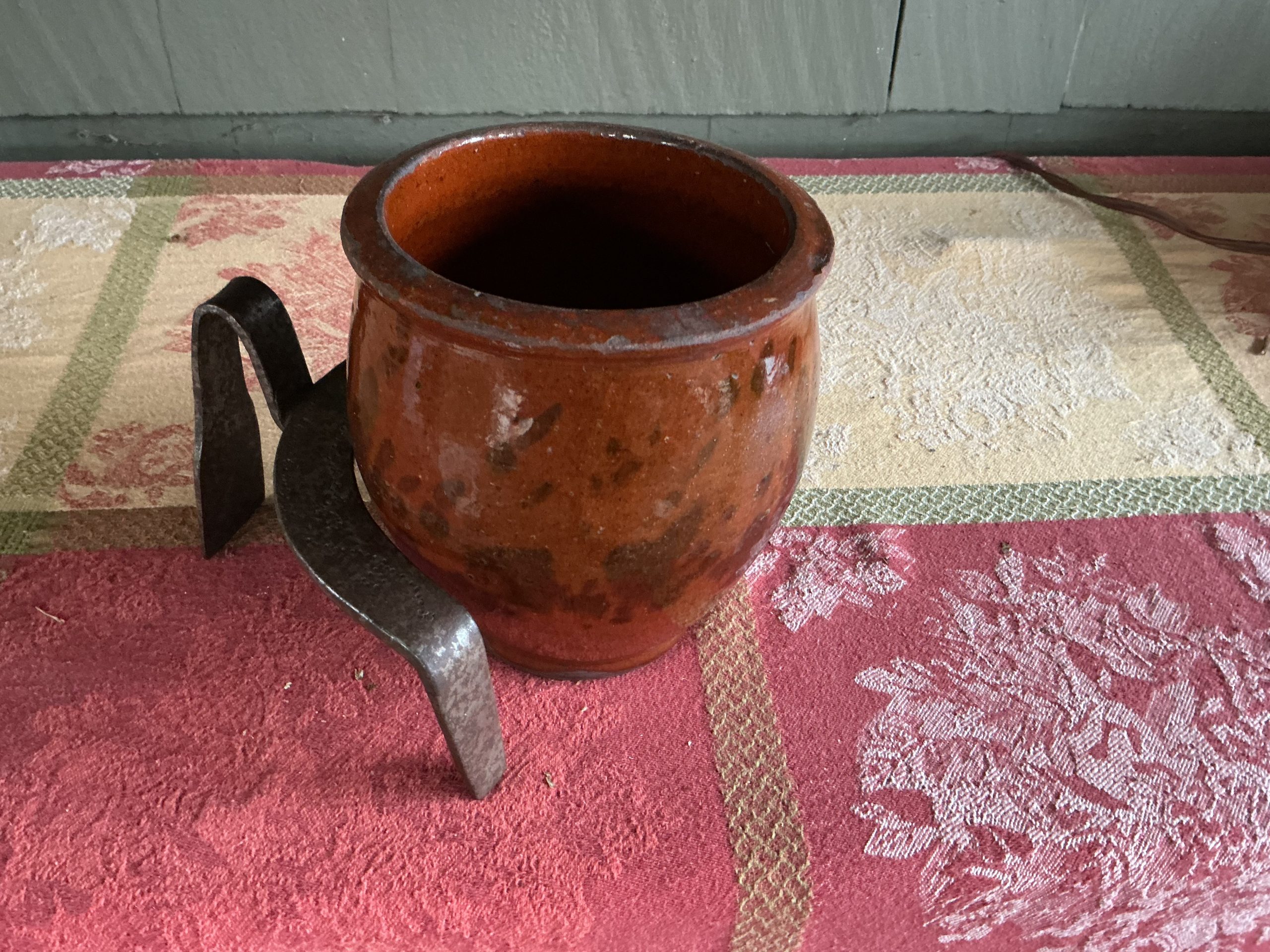 Home / Recent Additions: New to the website and Special Items / POT PUSHER 1660-1800 POT PUSHER 1660-1800 Description Description The pot pusher is basically a semicircular footed bumper with a rear handle; it was used primarily to push hot vessels on the hearth, or to maneuver coals back into the fire area.(BLTK) Dimensions: Pusher: 6″ wide SOLD